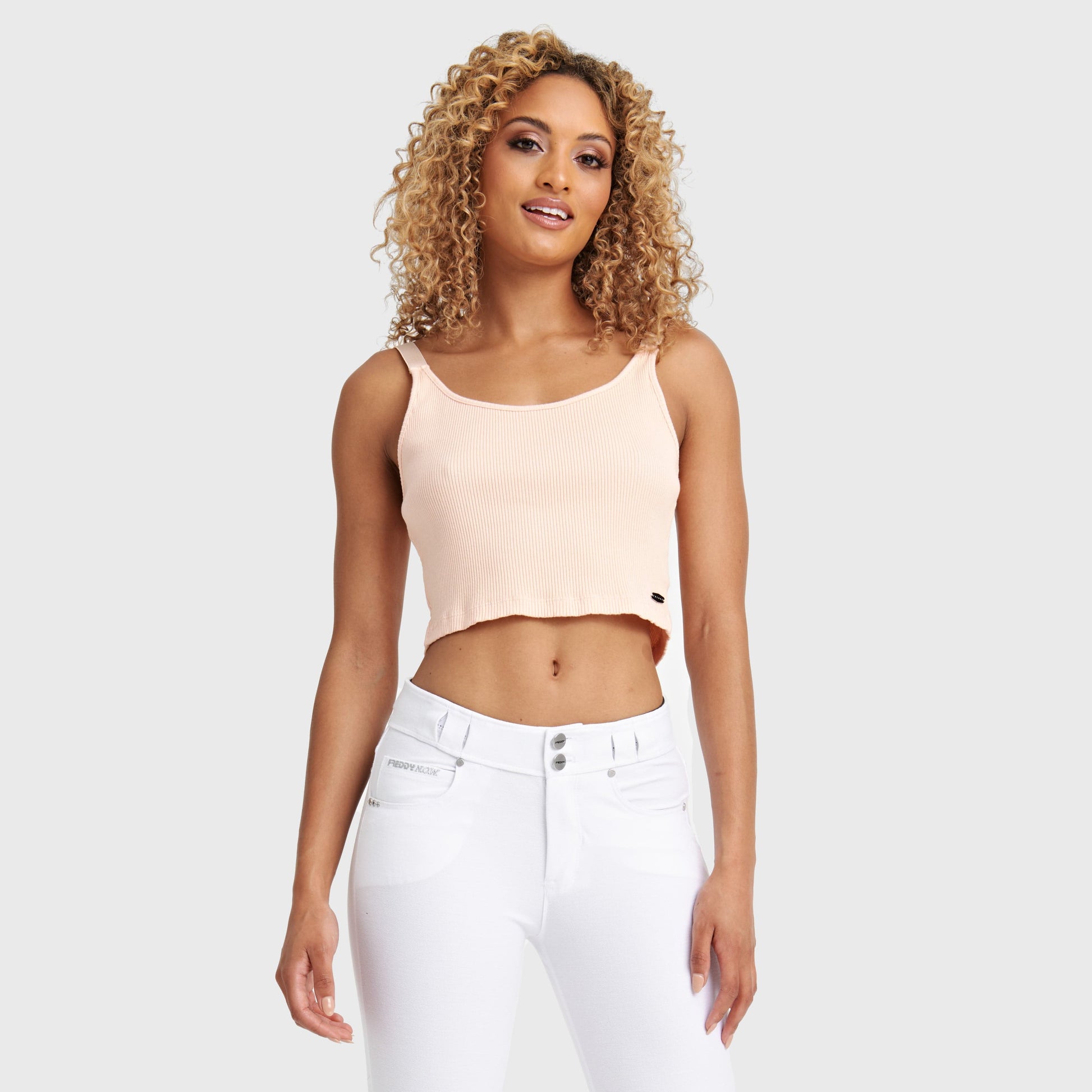 The cropped ribbed cami will look incredible paired with any pair of Freddy pants! Combine them with some white sneakers for a casual street style look, or dress them up with a pair of heels. Whatever your style, this cami has it all.