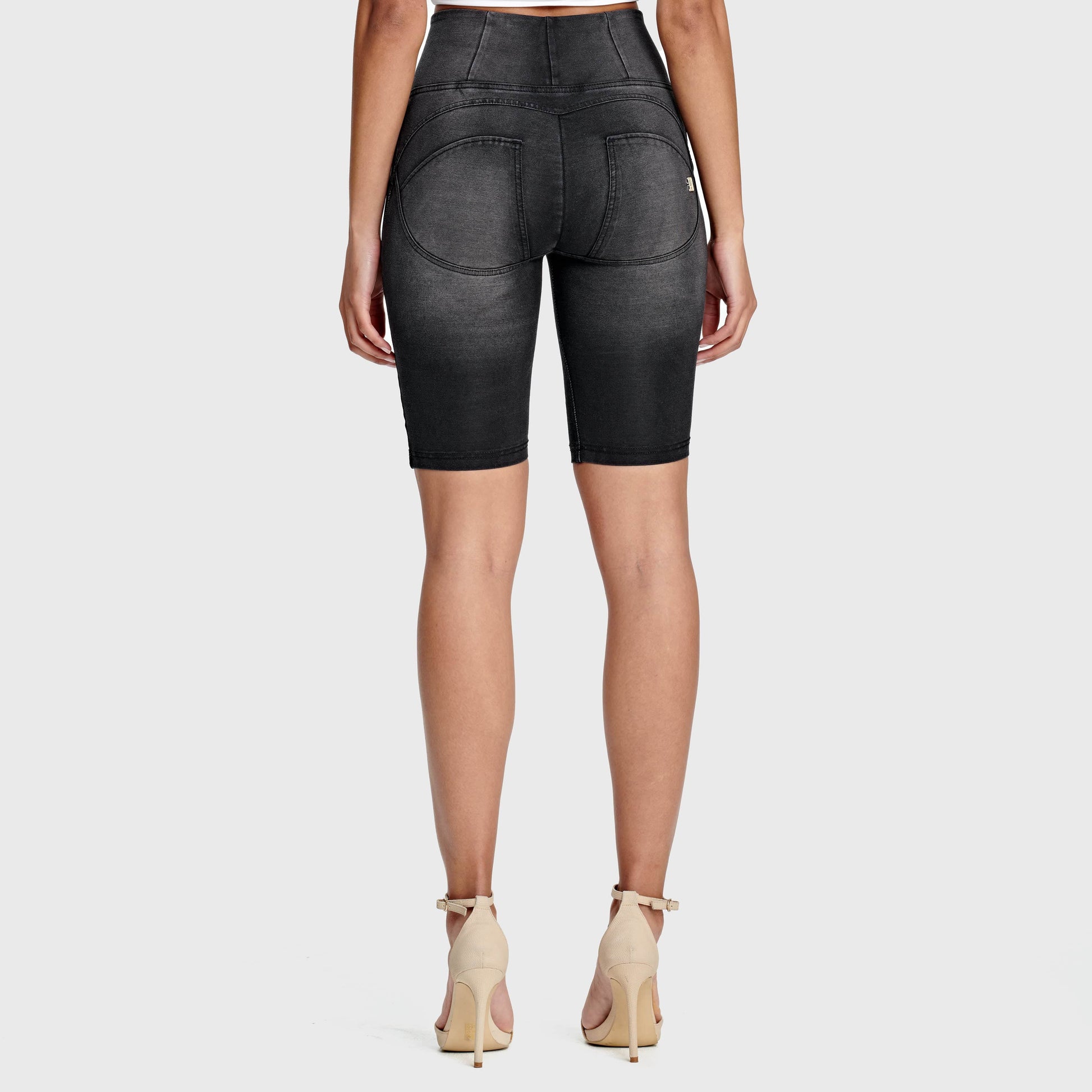 WR.UP® Denim - High Waisted - Biker Shorts - Black + Black Stitching