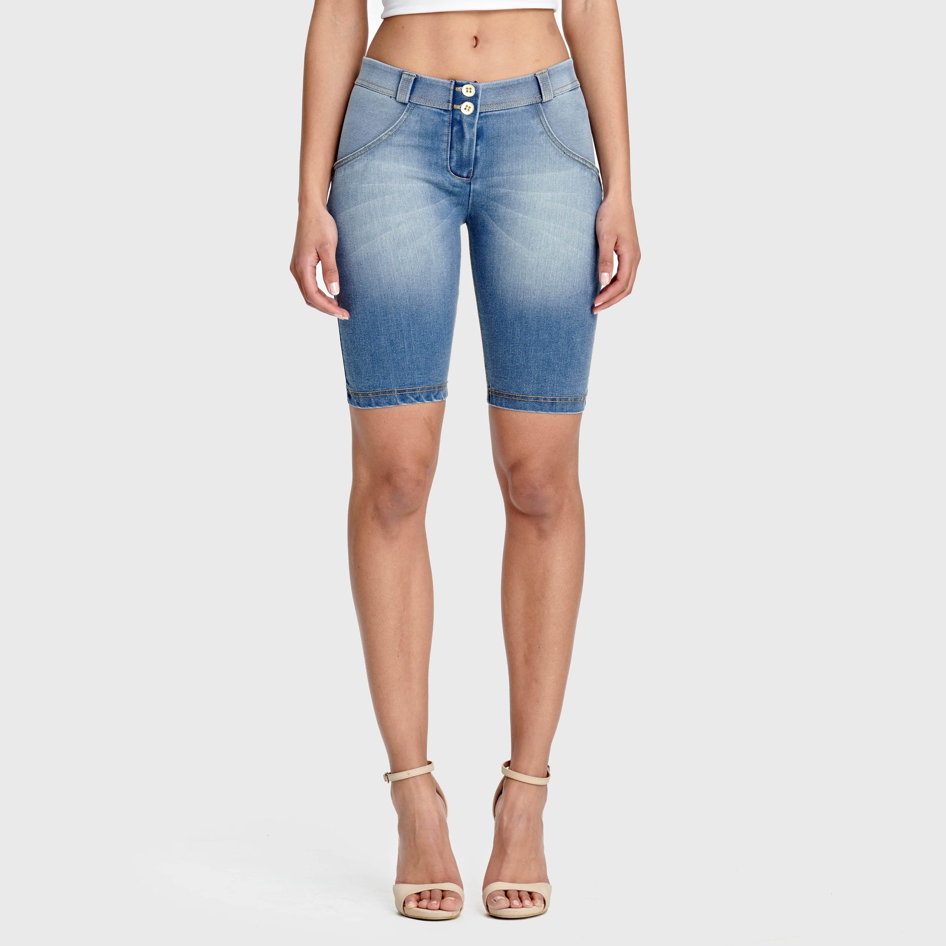 WR.UP® Denim - Mid Rise - Biker Shorts - Light Blue + Yellow Stitching