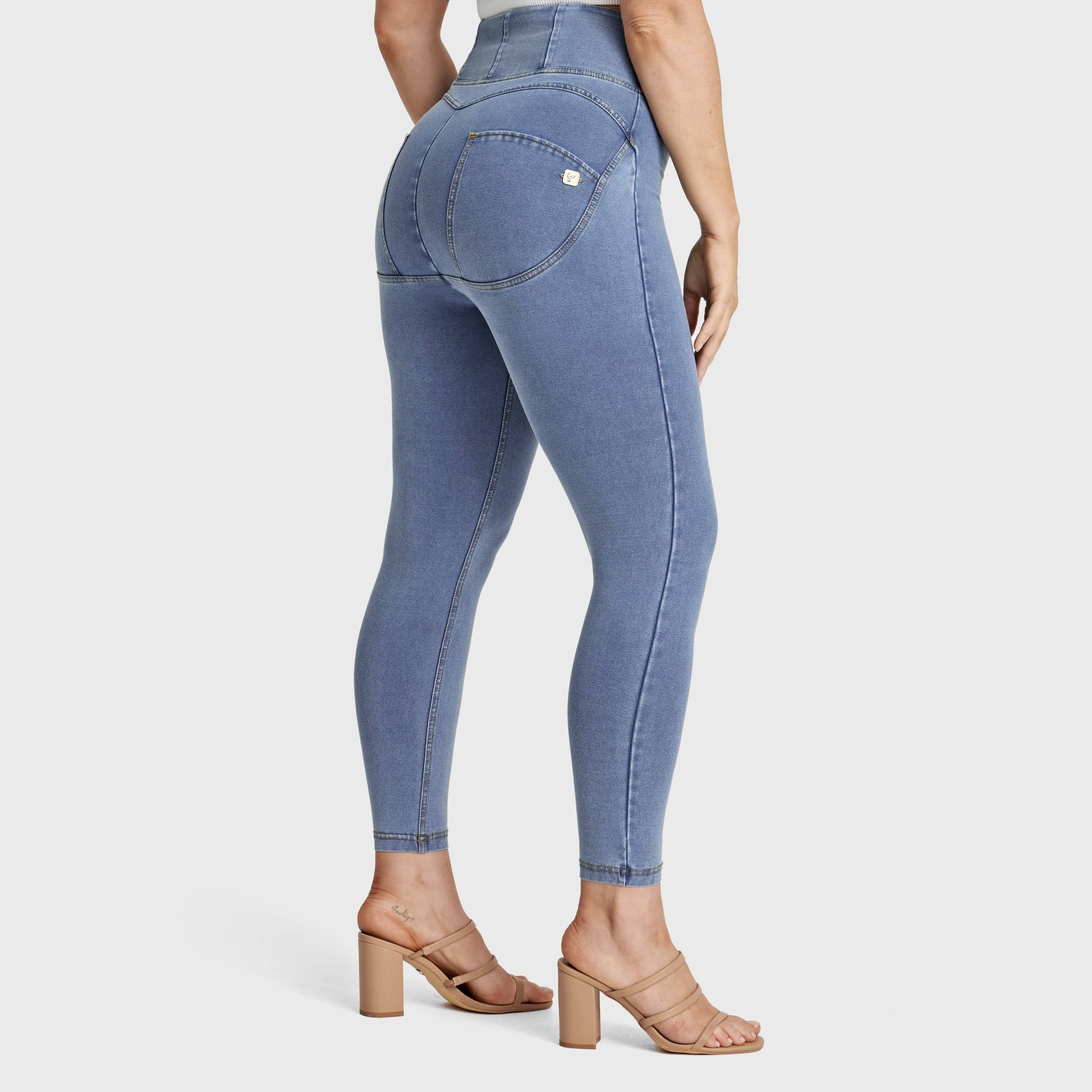WR.UP® Curvy Denim - Zip High Waisted - 7/8 Length - Light Blue + Yellow Stitching