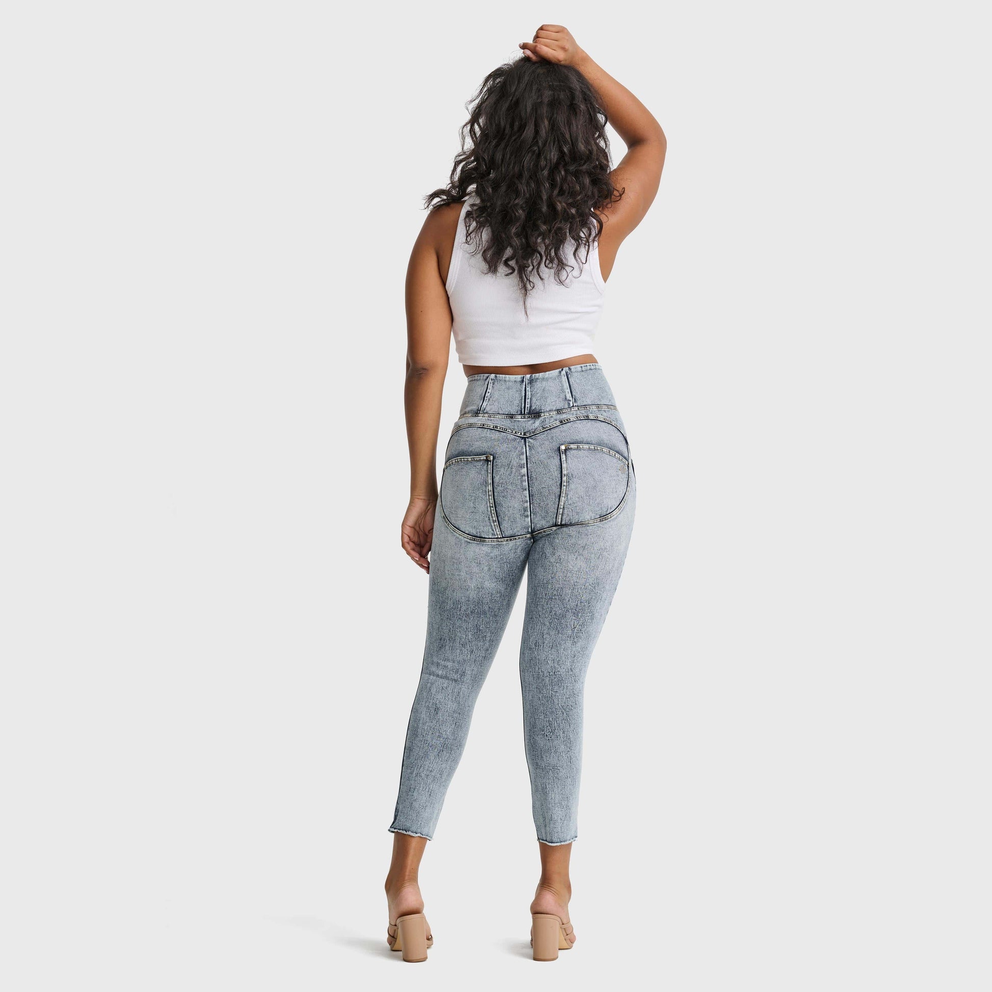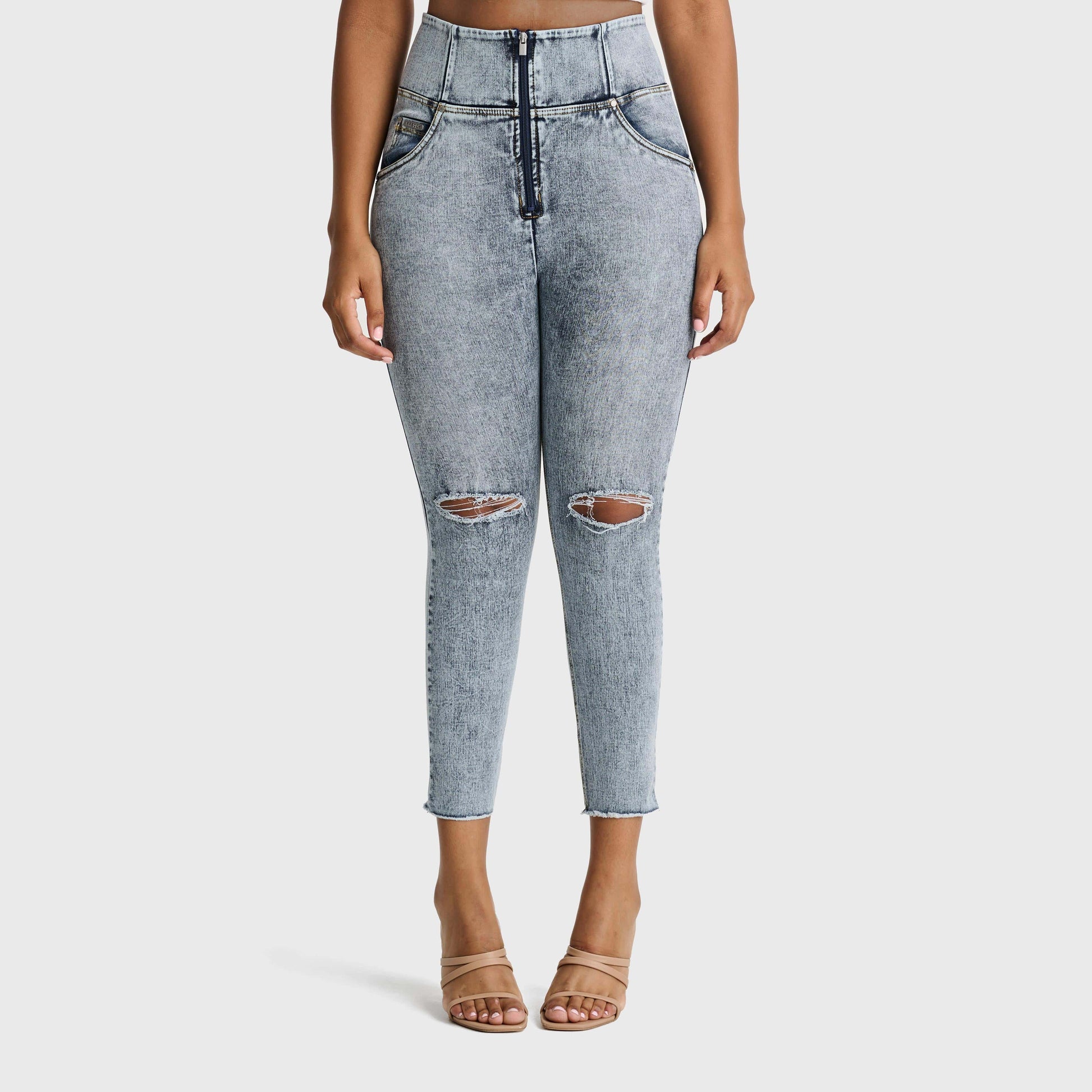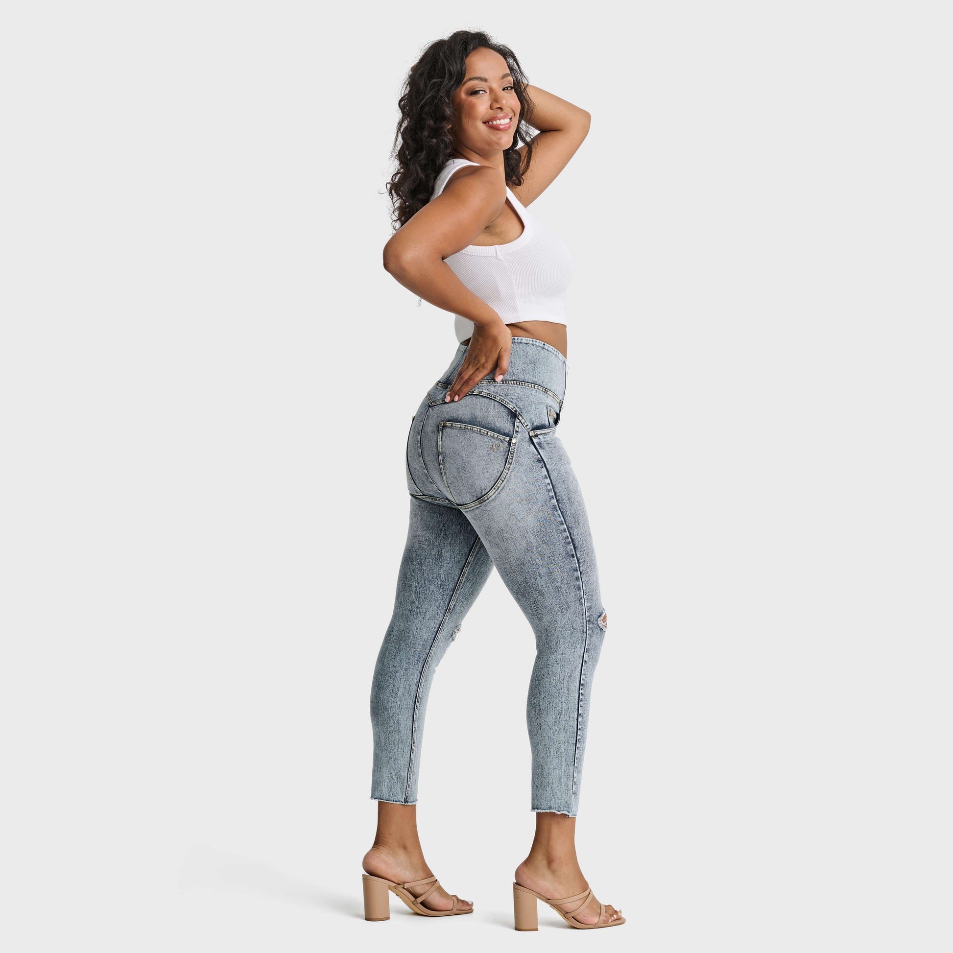 WR.UP® Snug Curvy Ripped Jeans - High Waisted - 7/8 Length - Blue Stonewash + Yellow Stitching