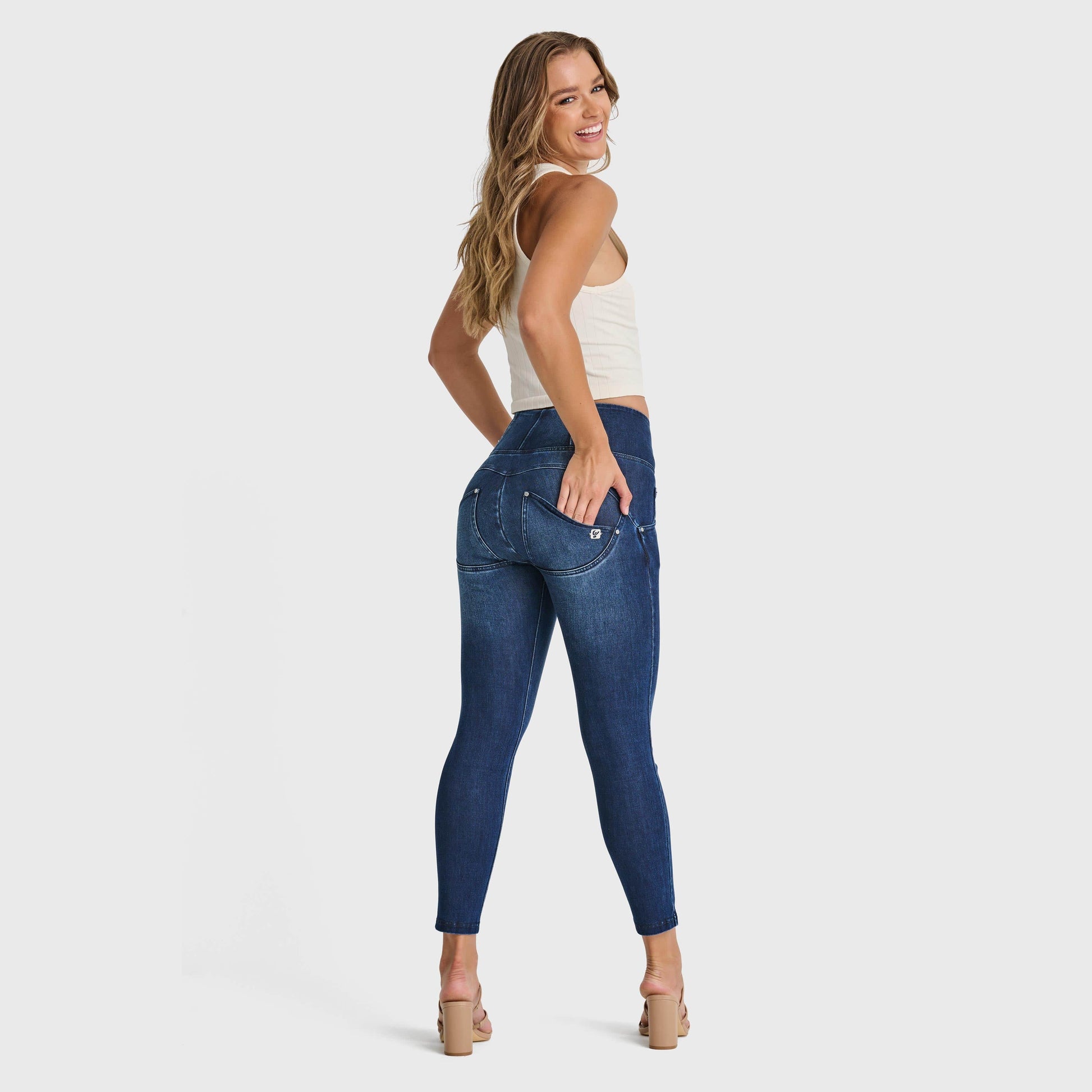 WR.UP® Snug Jeans - High Waisted - 7/8 Length - Dark Blue + Blue Stitching