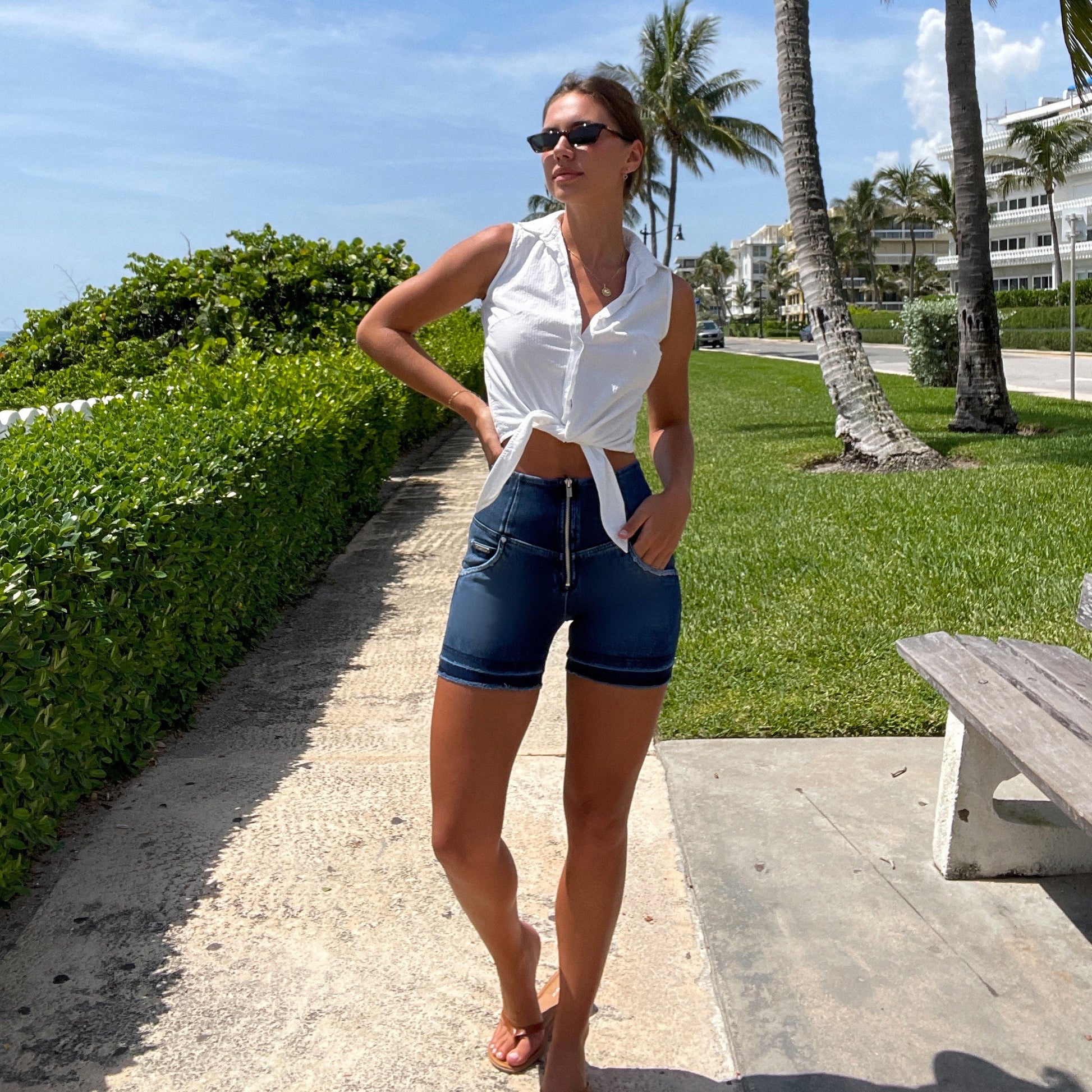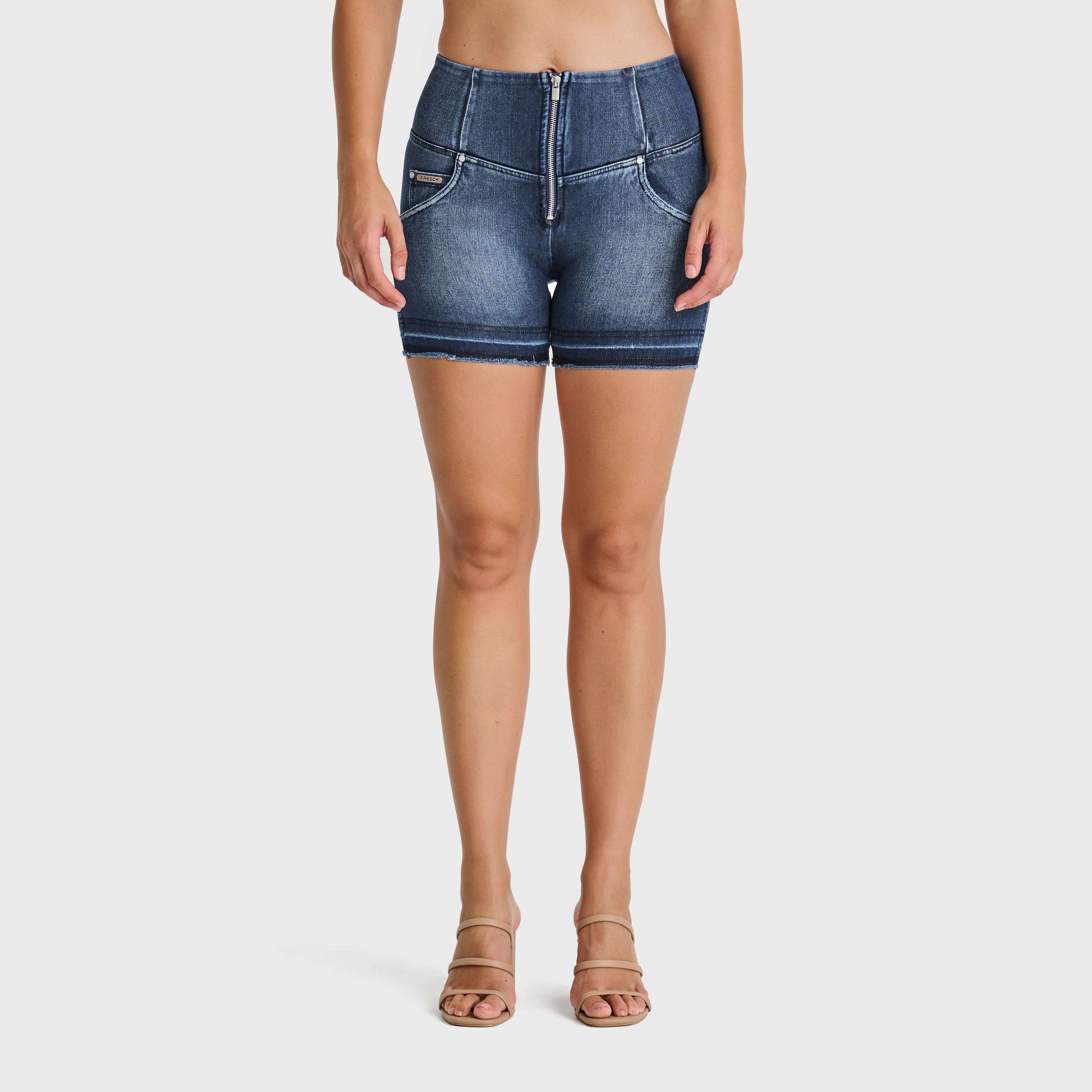 WR.UP® Snug Jeans - High Waisted - Shorts - Dark Blue + Blue Stitching